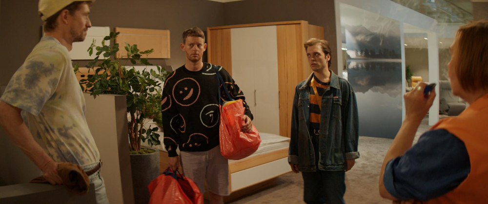 It’s after hours in a furniture store, and three young protagonists call for the help of a vaping fairy godmother. But will a supersized bed save the throuple or break them apart?