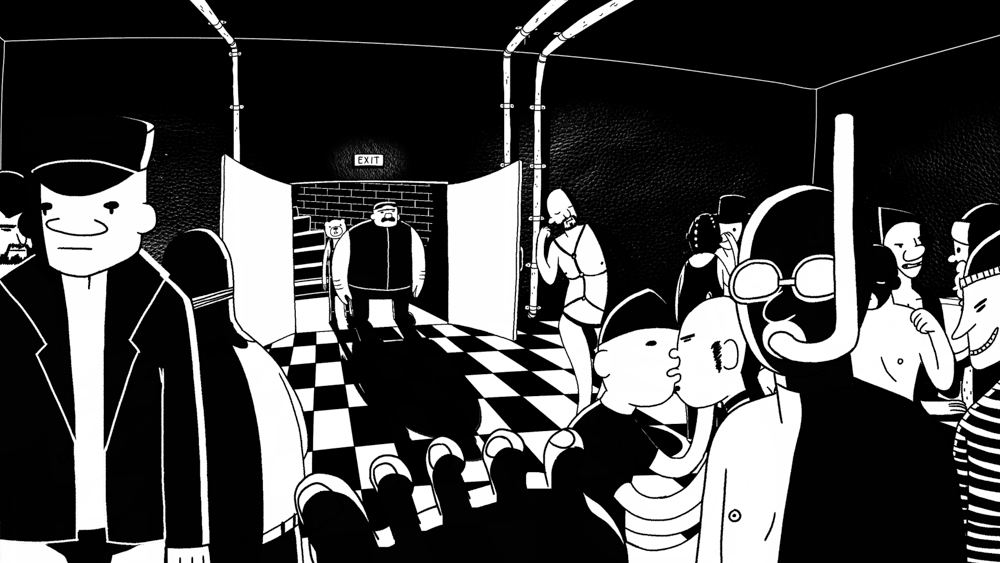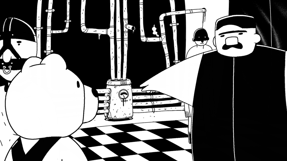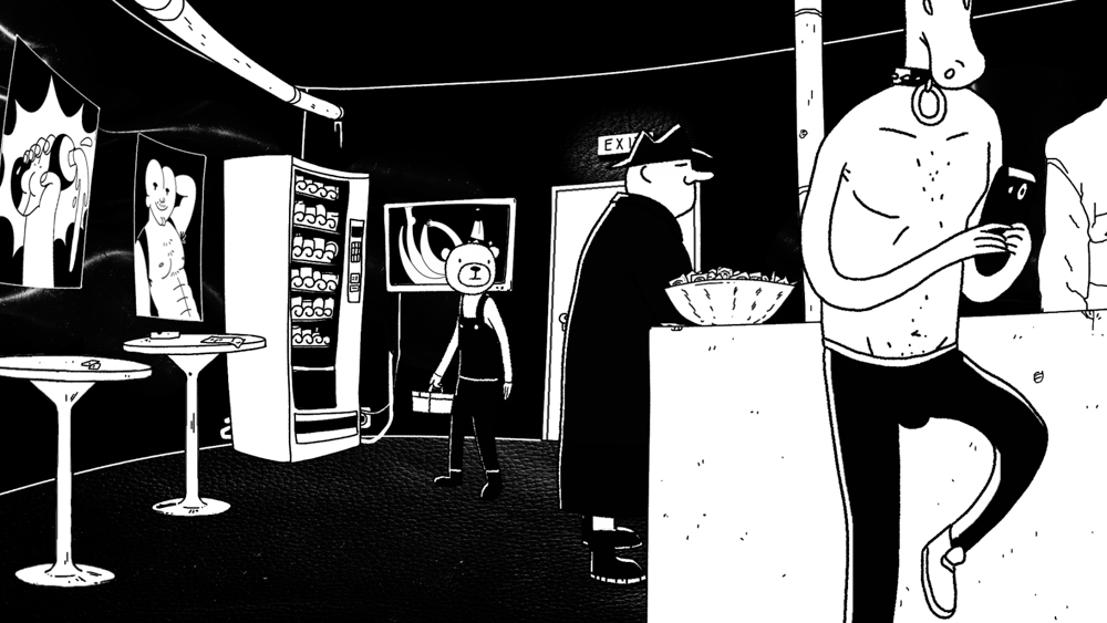 In striking monochrome, this delightfully deviant adult animation follows a bear (the actual animal, to be clear) who is surprised to find his latest plumbing job is in a gay fetish club.