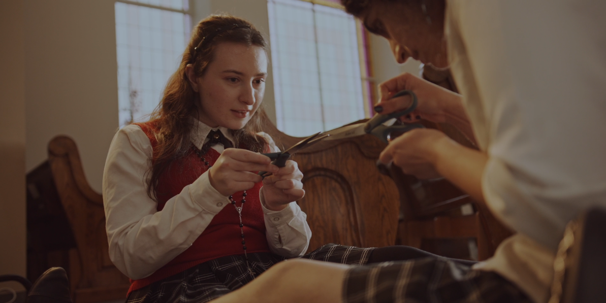 A devout Catholic teen makes a steamy confession–and her irreverent, sex-positive classmate overhears it.